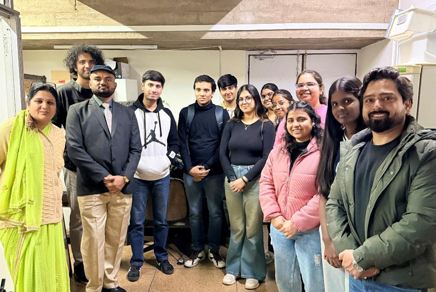 An academic industrial visit to the National Institute of Immunology (NII), New Delhi was organized for the BTech students of NIIT University on December 01 2025. The 23 students and 1 PhD scholar were accompanied by Dr. Utkarsh Raj, Associate Professor, Biotechnology & Bioinformatics Area. The objective of the visit was to expose students to real-world research environments, modern instrumentation, and contemporary technologies used in molecular and cellular biology.